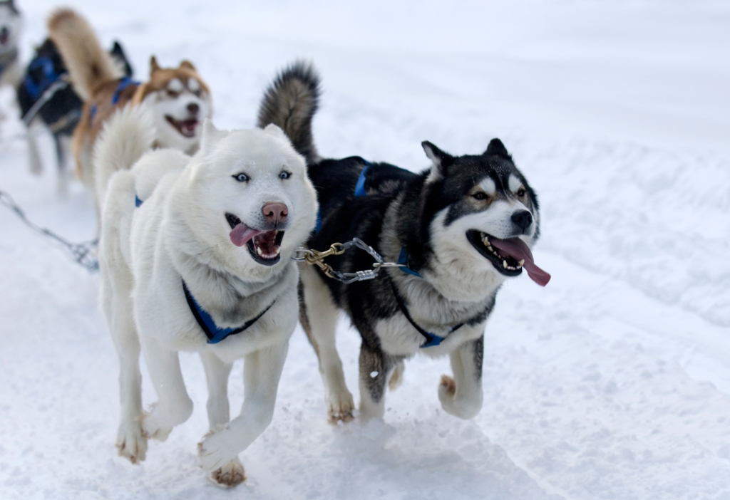 Families may book a dog sled or a sleigh ride through snow-glazed forest.