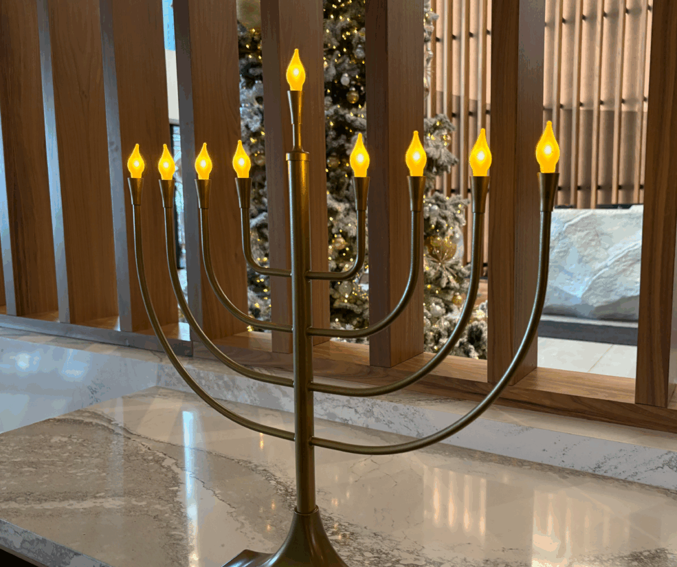 This December, a menorah will shine in our lobby as we honor the eight nights of Hanukkah. Each evening at sunset, a new candle will be lit, offering a moment of warmth and light for anyone who wishes to pause or gather.